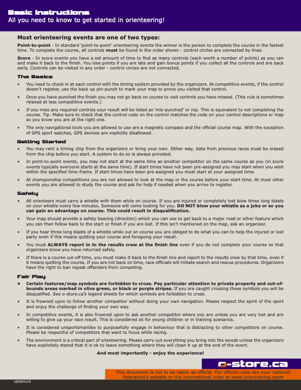The Orienteering Course and Basic Instructions Reference Guides show an orienteering course with pointers to get through it successfully, and give you a set of guidelines for getting started in orienteering.