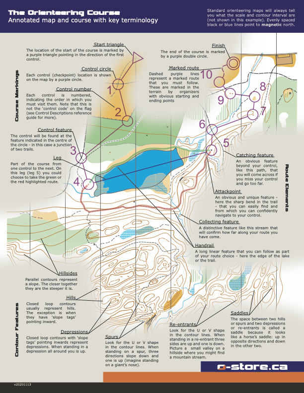 The O-Store has created a series of Reference Guides to help users become comfortable reading and interpreting orienteering maps and courses. Scroll down to select from a laminated set, a waterproof paper set or a free downloadable version.
